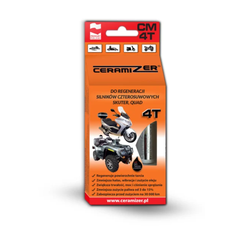 Ceramizer® CM-4T to preparat do regeneracji i zabezpieczania przed zużyciem powierzchni tarcia silnika w skuterach i quadach czterosuwowych.