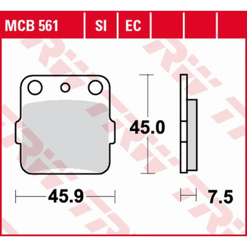 Klocki hamulcowe przód/tył, przeznaczenie: droga/offroad/skuter, materiał: organic-EC, 45x45,9x6,5mm pasuje do: HONDA CR, CRF, CRM, EX, NSR, TRX; KAWASAKI KEF, KFX, KLX, KSF, KX 65-660 1987-2020