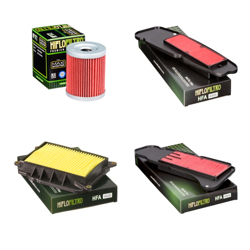 Kompletny zestaw filtrów renomowanej marki Hiflofiltro dedykowany do skuterów Yamaha YP 400 Majesty oraz X-MAX 400. Jeden zakup – wszystkie niezbędne filtry do pełnego serwisu. Zalecana wymiana co roku lub co 6 000 km.